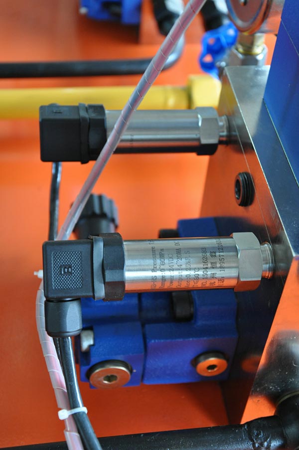 測試油缸部分的壓力變送器,可顯示油缸前進(jìn)與后退的壓力